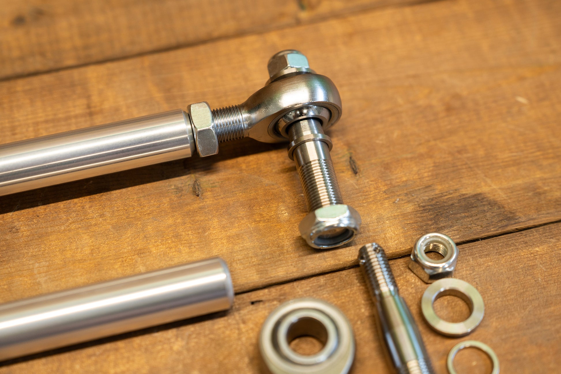 Other benefits of these toe arms include an extended adjustment range that goes beyond the factory eccentric bolt. They have easily serviceable components so you don't need to replace the entire arm. They also replace the factory inner bushing, an upgrade that improves the handling and control of the car all on its own