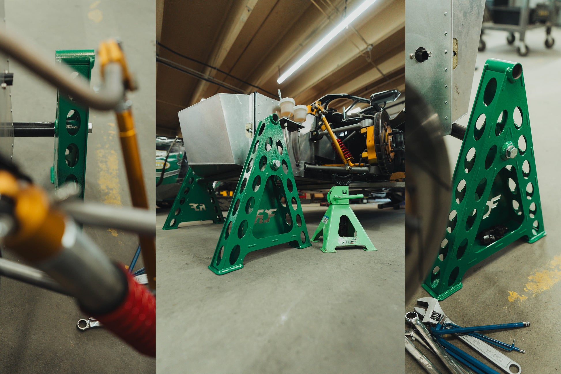 The FDF Rally Jack Stands and chassis kit provide a practical solution for stable vehicle support during maintenance. This kit not only improves the functionality of your maintenance setup but also facilitates faster and Safer vehicle servicing, essential for any race team.