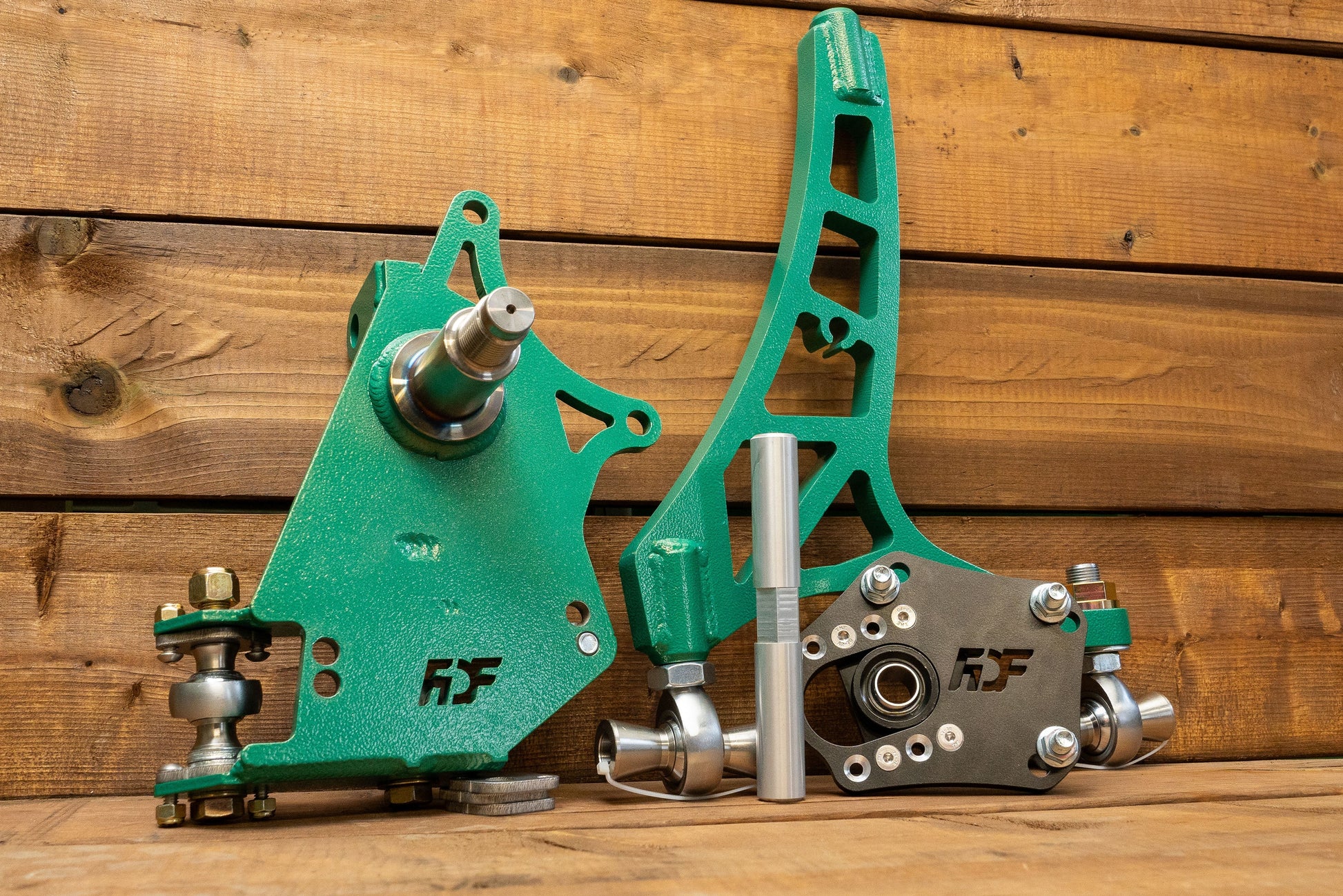 It uses a full knuckle design with OEM spindle pickup, so geometry stays proper and predictable. The lower control arms come with smooth adjusters to make alignment changes quick and easy, whether you're at the shop or the track.