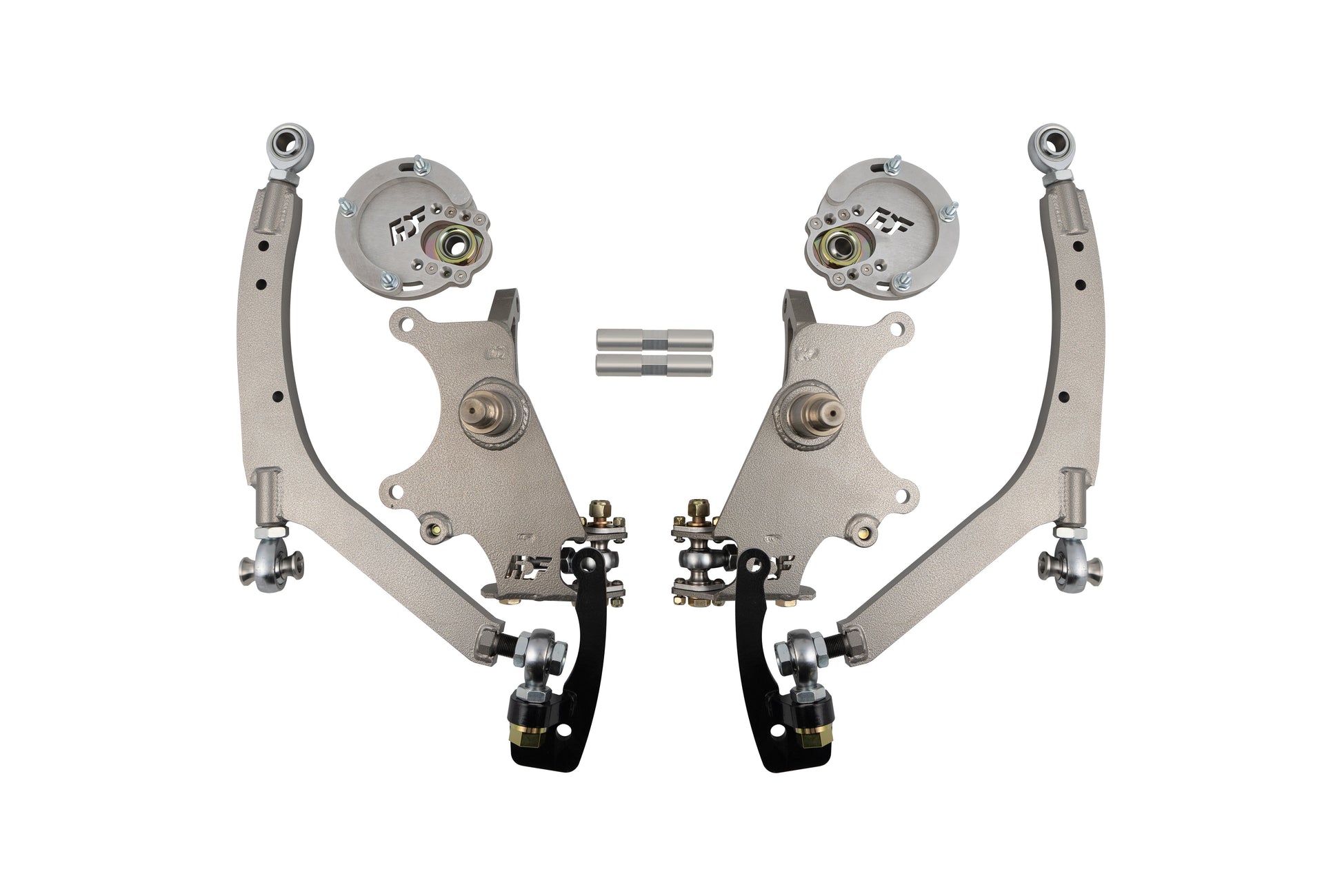 It’s a full knuckle design that keeps the OEM spindle location, so geometry stays in check. You get full lower control arms with heim joints and smooth adjusters that make alignment changes quick and easy—especially at the track.