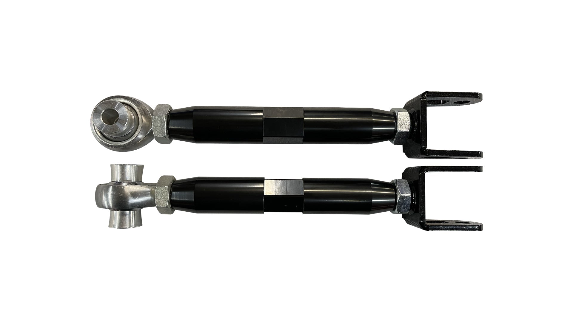 Our rear 370Z/G37 Camber arms are designed and manufactured in-house using CNC-machined Aluminum bodies, thick steel shackles, heavy-duty Heim joints, and an anodized protective finish